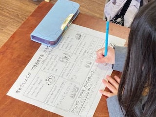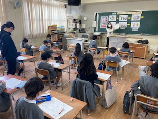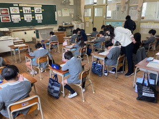 1年生の子どもたちに他校の栄養教諭に来てもらって栄養指導を行いました。テーマは[きゅうしょくができるまでをかんがえよう]です。子どもたちは1年生になって、はじめて小学校の給食と出会いました。今ではもりもり食べて、給食当番も自分たちでしています。その給食ができるまで、どんな人たちが関わっているかを1年生にも理解できるようにわかりやすく教えてもらいました。これからもたくさんの人たちのおかげで給食ができていることを考えながら食べられるといいですね。