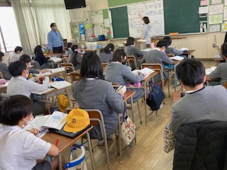 5年生の算数の授業です。角柱と円柱の特徴について調べていました。2つの底面は平行で合同な多角形や円になっています。上にあっても底面って言うんだね。側面は角柱の場合は長方形や正方形だけど、円柱の場合は曲面って言うのか。高さはどの部分になるのだろう。三角柱、四角柱、五角柱、六角柱…。子どもたちは調べた特徴をわかりやすく表にまとめたり図に書き込んだりしていました。