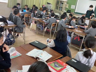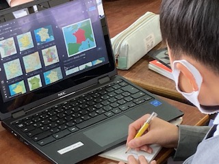 3年生の子どもたちが国語の授業で調べ学習をしていました。テーマは[外国のことを紹介しよう]です。テレビで外国の様子を見たり聞いたりしたことはありませんか。先生に尋ねられて、みんな見聞きした経験を口々に話していました。グループに分かれて興味を持った外国についてタブレットで調べています。暮らしの様子や食べ物、衣装、言葉、国旗、人気のスポーツ…。調べたことを上手にまとめたり説明の文章を考えたり、発表の仕方を工夫したりしていく学習です。