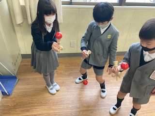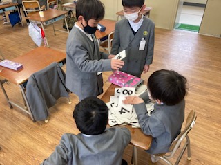 1年生の子どもたちがグループに分かれて、何やら練習しています。けいさん、なわとび、けんだま、がっき…。発表の準備のようです。自分たちができるようになったことをそれぞれ練習したり発表する方法を考えたりしていました。来週の学習参観で披露するのかな。他にもいっぱいできることが増えたよね。すごいな、1年生。