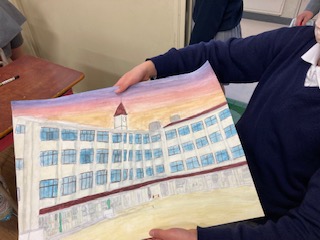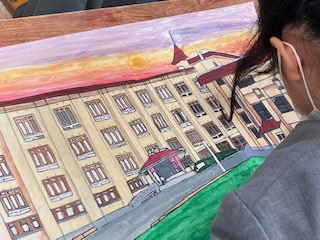 6年生の子どもたちの絵画に驚きです。どの子もみんなそれぞれ今までに身につけた技術を駆使して、すばらしい作品に仕上げようと頑張っていました。中には細か過ぎて時間が足りない子も…。いいんですよ、納得がいくように最後まで時間をかけてていねいにやり遂げましょう。それにしてもみんな上手です。