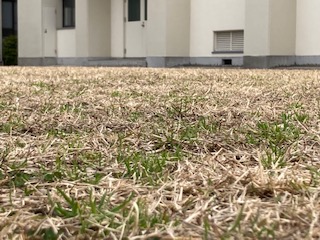 冬の間、枯れていた芝生広場に、緑色の芽が出始めてきました。今までずっと茶色く見えていた芝生広場に、まだところどころですが緑色の部分が…、わーい!春の息吹きが感じられます。