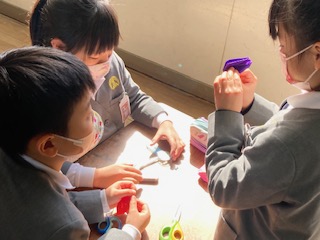 2年生の子どもたちが折り紙でチューリップの花を折っていました。今週に行われる卒業生を送る会で使うためのものです。先生が何人かの子に折り方を教えて、その子たちが他の子たちに教えていく方式です。折り方が難しく、なかなか一斉指導では先生が回りきれないので、小さな先生たちが活躍できるようにしました。6年生のお兄さんお姉さんたち、きっと喜んでくれると思います。