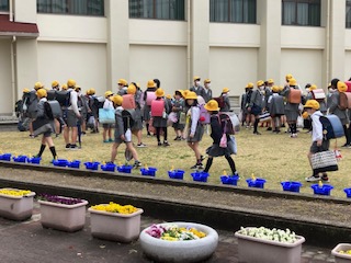 今朝の児童朝会では、東日本大震災のことを話しました。12年前に大きな地震が起こり津波が発生したために、たくさんの犠牲者や行方不明者が出たこと、命を守ることや正しい判断をして行動することの大切さなどについて話しました。また、この大阪でも南海トラフが起こると言われています。お互いに協力し合うことが大切ということも話しました。