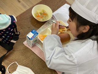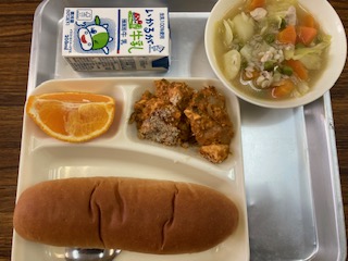 今日の給食のメニューは、豆腐のミートグラタン、押麦と野菜のスープ煮、デコポン、牛乳、パン、でした。豆腐のミートグラタンは豆腐が入っているのでヘルシーかつボリュームがありました。押麦と野菜のスープ煮はチキンスープをベースにしていて彩りもあざやかで洋風感が出ていました。デコポンは冬から春にかけてが旬で、今が一番おいしい時期です。