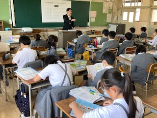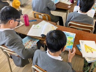 子どもたちは新しい教科書を先生から配ってもらいました。まっさらできれいな教科書です。どんな内容なのかな?新しい学年ではどんな学習をするのだろう?…、子どもたちは興味を持ちながら新しい教科書をながめていました。そして一冊ずつに名前を書いていきました。写真は5年生の子どもたちの様子です。