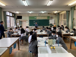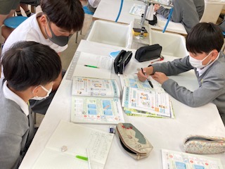6年生の子どもたちが理科室で学習していました。はじめに、改めて理科室の使い方や安全面についても指導を受けていました。まずは[ものの燃え方と空気の動き]という学習です。ものがよく燃えるにはどうしたらいいのかな?空気が関係しているのだろうか?…、子どもたちは今までの経験から自分の意見を発表したり、教科書で実験方法について確認したりしていました。今後、グループで協力して実験を進めていきます。