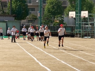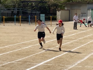 6年生の子どもたちが勢いよく走り抜けていきます。運動場で50m走の練習をしていました。本番に向けた練習です。それでも顔は真剣な表情です。3月の5年生の時からたった1ヶ月ですが、6年生になって一気に体が大きくなったように思いました。走る姿にも迫力が感じられ、たくましさも備わったように感じました。さあ記録はどうだったかな?しっかり本番で伸ばしてほしいと思います。