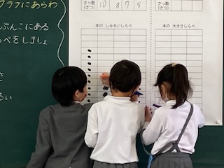 種類や数をわかりやすく表す方法はないかな?…、2年生の算数の授業です。子どもたちは表やグラフを使って、まとめてみることにしました。なるほど、表やグラフだと見ただけでわかりやすくなるね。いろいろなものを表やグラフを使って表してみよう。2年生の子どもたち、表やグラフにまとめることのよさに気づいたみたいです。