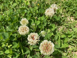 芝生広場にシロツメクサが生えています。これからもっともっと増えてくると思います。以前はシロツメクサで指輪を作ったり冠を作ったりする女の子がいましたが、最近ではなかなかそのような光景を見ませんね。作り方が上手く伝わっていないのでしょうね。もしかしたら若い先生たちも知らないかも・・・。今度、聞いてみよう。
