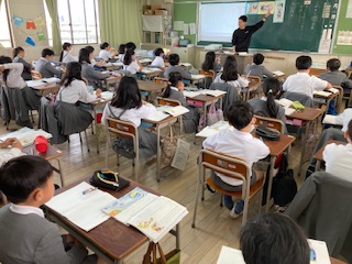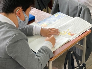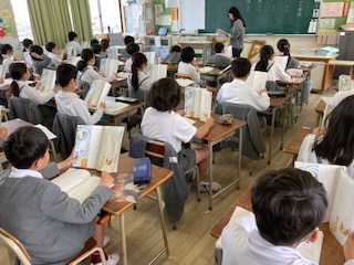 4年生の教室の前を通ると1組2組の両方の教室から同時に子どもたちが音読する声が聞こえてきました。2クラス一斉なので、ろうかまで大きく響いていて、なかなかの迫力がありました。登場人物の気持ちや場面の読み取りでは、気づいたことや思ったことを進んで発表したりノートにまとめたりしていました。4年生の子どもたちもとても落ち着いた様子で集中して学習していて、ものすごく成長したように感じました。