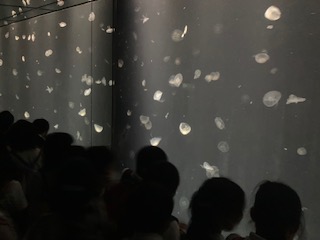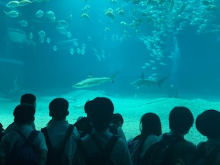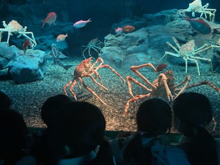 たくさんの生き物たちを見ることができました。生き物の名前を覚えたり特徴を調べたりしている子たちもいました。思っていたほどは混雑していなくて、しっかりと見学することができてよかったです。クラゲがとても神秘的でいろいろな種類がいて、子どもたちが熱心に見入っている様子が印象的でした。