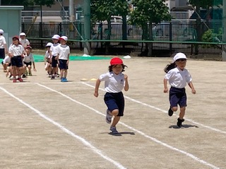 1年生の子どもたちがとっても元気いっぱいに運動場を走っていました。