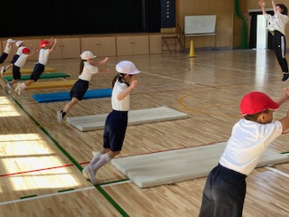 腕を振って、ひざを曲げて、1・2・3…ぴょーん!