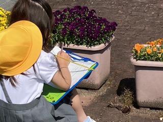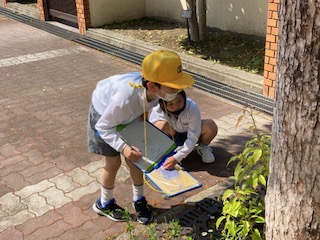 自分でいろいろなものを見つけて絵を描いたり様子を書いたりするの。