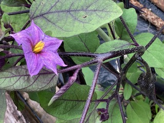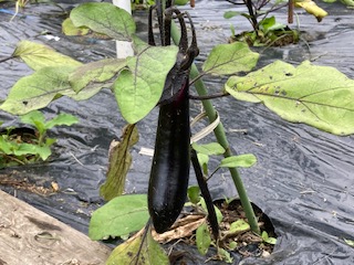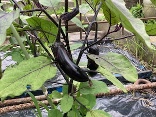 学習園に植えたナスの苗が生長し、ナスの実ができていました。ナスは淡い紫色のきれいな花で下向きに花を咲かせます。これから少しずつ他の野菜も実をつけていきますね。スーパーでは簡単に野菜を見ることができますが、実際に花を見たり実が大きくなっていくようすを観察することは、子どもたちにとって貴重な体験ですね。