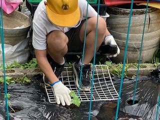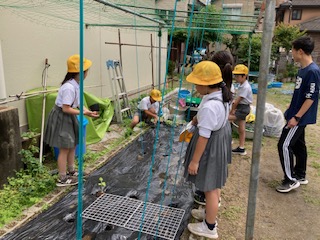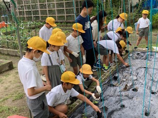 4年生の子どもたちが学習園で苗を植えていました。ヘチマとヒョウタンです。今までは教室で育苗ポットで観察しながら育てていました。少し大きくなってきたので、畑に植え替えます。ヘチマって食べられるの?ヒョウタンって食べられる?子どもたちが質問していました。そうですね、あまり料理を聞いたことがないですよね。ネットで調べてみたら食べられることは食べられるらしいですが、細かな注意が必要なようで、あまりメジャーではないみたいですね。