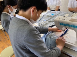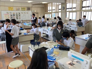 6年生の子どもたちが家庭科学習でエプロン作りの真っ最中です。しつけをしたあと、ミシンで縫っていきます。ミシンの糸がからまって、ほどけずにあちこちから、なんとかしてーと先生を呼ぶ声があがります。てんやわんやとはこのことです。でも少し形が見えてきたら、子どもたちもうれしそうにしていました。