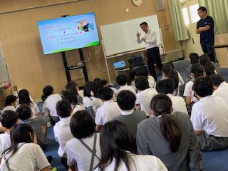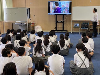 先日、5年生にも非行防止教室を行いましたが、今日は6年生の子どもたちに非行防止教室を行いました。東淀川警察少年係の方に来ていただいて、いろいろと教えていただきました。大阪の少年犯罪の実態や具体的な事案、更生保護施設、SNSなどのネットの裏に潜む危険など多岐にわたって話していただきました。子どもたちは最後まで真剣な表情で聞いていました。今後も正しい判断や行動がとれるように成長していってほしいと思います。