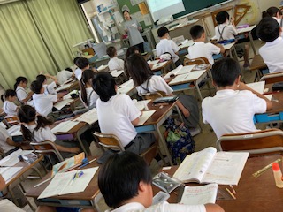 4年生の教室の前を通ると、両方のクラスとも算数の授業をしていました。[垂直]と[平行]です。垂直や平行な直線の描き方や垂直や平行な直線の見つけ方について勉強していました。三角定規をていねいに扱ったり、垂直や平行のきまりに注目したりしながら進めていきます。どちらのクラスも積極的に発表したり意見交流をしたりする子どもたちの姿がたくさん見られました。