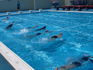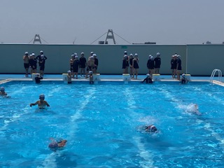 3時間目には5年生の子どもたちがプールに入りました。みんな笑顔です。太陽の光がふりそそぐ中、しっかりと体を動かして初日から泳ぎます。けのび、バタ足、クロールと水の感触を確かめながら…、最後にはさっそく25mにチャレンジです。高学年になって少したくましさも増したように思いました。さあ、泳力向上を目指して、この夏も頑張るぞ!