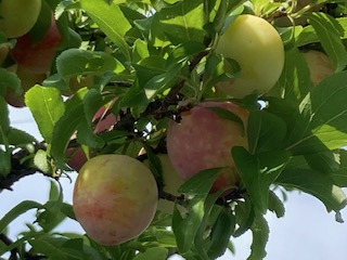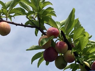 学習園(果樹園)にすももの実がなっていました。すももの果実はももに比べて酸味が強いことが和名の由来になっているそうです。英語ではアジアン・プラム、ジャパニーズ・プラムなどと呼ばれています。淡いピンク色に少しずつ染まっていくようすがよくわかります。なんとなくいいにおいがしてくる気がしてきました。