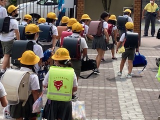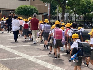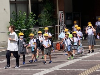今日は5時間目に、地域子ども会を行いました。日々の集団登校や放課後の遊び方などについて、1学期の反省をしました。また、子どもたちが楽しみにしている夏休みの生活についても話し合いました。安全に過ごすためにはどうすればいいか、みんなで考えました。そのあと、一斉に集団下校をしました。担当の先生はそれぞれの班の集合場所まで送って行きます。さあ、一学期もあと5日ですね。