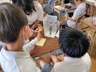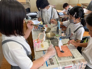 6年生の子どもたちが図工の授業で取り組んでいた作品がほとんどできあがってきました。テーマは[未来のわたし]です。みんな上手に作っています。最後にニスをぬってつやを出したり、お互いの作品を鑑賞し合ったり、パソコンで最終チェックをしたり…。思い思いに仕上げに向けた活動をしていました。