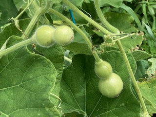 学習園をのぞいてみると、小さな小さなヒョウタンの実ができていました。ヒョウタンの赤ちゃんです。まだ3cmくらいの大きさです。ヒョウタンは日本には縄文時代に伝わり、古くから人々の生活に関わってきました。果実は苦みがあるので食用にはせず、乾燥させて容器や装飾品などに加工することが多いです。夏の暑い日差しを浴びながら少しずつ生長していきます。まだ夏休みに入ったばかりですが、子どもたちは元気にしているかな。熱中症に気をつけて、安全に気をつけて、楽しく夏休みを過ごしてほしいと思います。