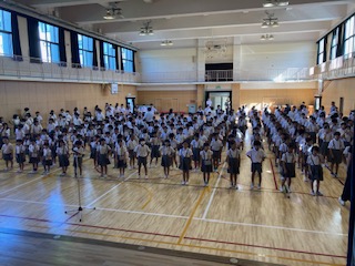熱中症のことを考えて、全部で10分もないくらいの短いものでしたが、子どもたちの元気な姿が一斉に集まるのは、やっぱりいいものですね。