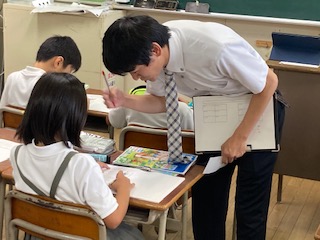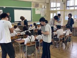 今日は5時間目に、3年生において算数の研究授業を行いました。年間を通して計画的に研究授業を実施し、互いに見合い討議を深めることで授業力の向上に努めています。大阪市教育センターからも講師先生に来てもらっています。今日の学習は、あまりのあるわり算で、場面に応じてあまりを的確に処理するという内容でした。子どもたちが自分の考えを数学的な視点を持って自分の言葉で説明できるように導くことがねらいでした。積極的に発表している子どもたちの姿がたくさん見られました。