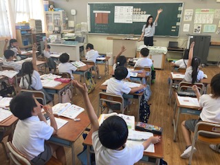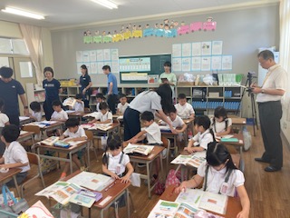 続いて3時間目は、1年生の研究授業です。6年生から1年生の教室へ移動するとタイムスリップした感じになってしまいます。この子たちもあと5年経てば、さっきの6年生みたいに・・・。