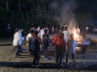 大きく燃える炎を囲んで、歌ったり踊ったりゲームをしたりして、楽しい時間を過ごすことができました。キャンプファイヤー係の子たちや担当の先生たちの準備のおかげで、とても盛り上がりました。さらに5年生の仲間としての絆が深まったように思います。
