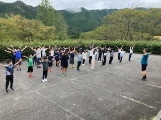 とても気持ちのよい朝です。朝の気温は24度、肌寒いくらいです。子どもたちはみんな元気です。朝のあいさつをして、ラジオ体操をしました。
