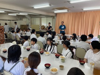 宿舎での最後の食事は親子丼とみそ汁です。