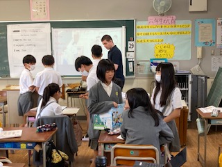 6年生の英語学習の様子です。[夏休みのできごとや感想を発表することができる]ことが目標です。I went to〜、I enjoyed〜、I made〜。教科書の参考例を使って、お互いに伝え合っています。わからないところは先生に尋ねて、再度チャレンジしていました。中学生に向けて、少しでも英語に慣れ親しめるといいですね。