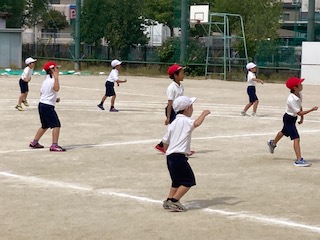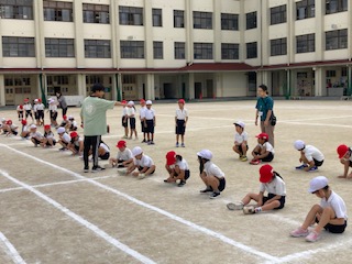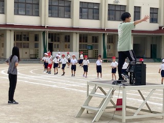 1年生の子どもたちが運動場で元気よくダンスの練習をしています。ダンスはだいたい覚えることができました。でも同じ場所でずっと踊っているわけではありません。場所が移動するのです。そうです、1年生の子どもたちに隊形移動を教えるのは結構大変なんです。一人一人に伝えて回ります。ここだよ、あなたはこっち、そっちじゃない、ちょっと寄りすぎ、あー離れすぎー…。運動会あるあるです。見ている側はおもしろいんですけどね。先生たちは大変なんです(笑)