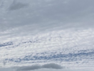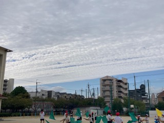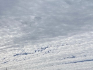 空にうろこ雲が見られました。秋によく見られる雲のようすで、魚のうろこのように小さな雲のかたまりが空一面に広がっています。うろこ雲は秋の季語にもなっていて、しばらくすると雨模様になるとも言われています。ひつじの毛のようにも見えるので、ひつじ雲と呼ばれることもあるようです。