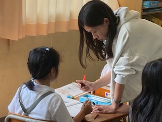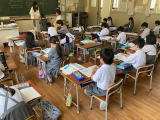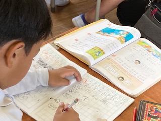 1年生の子どもたちが算数の授業で、くり上がりのあるたし算の勉強をしていました。4+8や5+9などです。