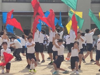 高学年の子どもたちが責任をもって係活動に取り組んだり、応援団が盛り上げたりしていたところもとても素晴らしかったです。ぜひご家庭で今日の運動会のことについて、子どもたちとお話いただき、子どもたちの頑張りや成長をしっかりとほめてあげてほしいと思います。保護者の皆さまや地域の皆さまの大きな声援や拍手に、子どもたちもとても喜んでいました。本日は、皆さま、どうもありがとうございました。また近隣の皆さまにおかれましては、練習中から音楽等の大きな音でご迷惑をおかけし、誠に申し訳ありませんでした。これまでのご理解ご協力に感謝申しあげます。