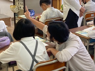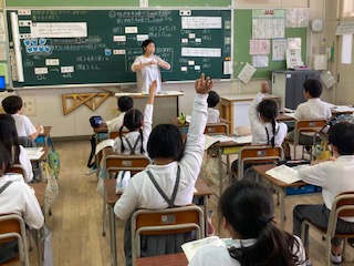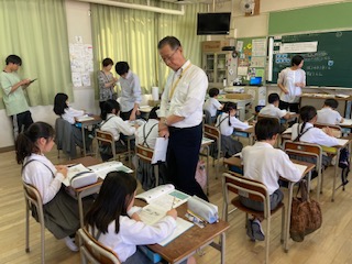 3年生の算数の授業です。問題文を読んで与えられた情報から、まず関係性を図に表して、それをもとに立式していきます。[何倍]というキーワードがあるのですが、式は、わり算になるので、しっかりと問題場面をとらえなければいけません。子どもたちはていねいに学習を進めながら理解を深めようと頑張っていました。今日も教育センターよりスクールアドバイザーの先生に来ていただき、指導助言をしてもらっています。