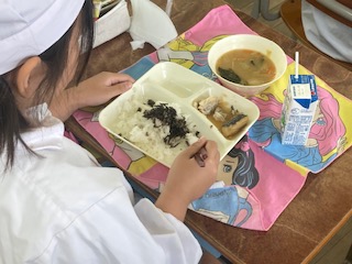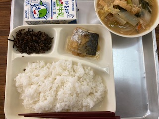 今日の給食のメニューは、さごしのみぞれかけ、みそ汁、牛ひじきそぼろ、牛乳、ごはん、でした。さごしのみぞれかけは塩で下味をつけたさごしの身がふっくらしていて、ゆず風味の大根おろしがさっぱりしていました。みそ汁はやさしい味つけで、野菜がたっぷり入っていました。牛ひじきそぼろは牛ひき肉とひじきを甘辛く味つけし、しそで風味をつけていて、ごはんのお供にぴったりでした。