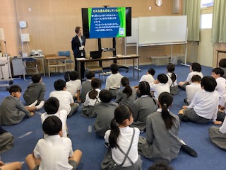 5年生の子どもたちに特別支援教育の一環として、視覚障がいに関する授業を行いました。すぐ近くにある大阪北視覚支援学校の先生に来てもらって、目が見えない、目が見えにくい子どもたちの学校での様子や頑張っていること、生活や授業の工夫などについて教えてもらいました。体験フィルムを使って、見えにくい状態や視野が狭くなる状態なども体験しました。特別な学習用具や学校施設の工夫についても紹介してもらいました。本校にはないものばかりなので、子どもたちにとっても新しいことを知るよい学習になったと思います。