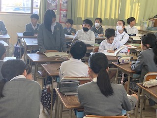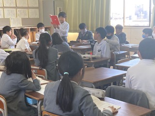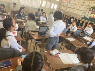 4年生の国語の授業です。子どもたちが調べたことを順番に発表していました。パソコンでの資料作成も同時に行なっていました。調べた内容に対して、その特徴や良さ、他との違い、ポイントとなる点など、いくつかの要点にしぼって簡潔にまとめて、最後にまとめとして自分の考えや感想をかならず付け加えていました。どの子も大きな声ではきはきと発表していて、聞く姿勢もよく、話している友だちの方へからだを向けていました。発表後にはみんなで拍手をして、先生も一人一人に対してコメントをしてあげていました。