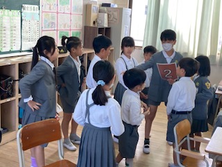 2時間目にキッズ班活動をしました。キッズ班とは1年生から6年生までのたてわり班のことです。いつも6年生のお兄さんお姉さんたちが下級生の面倒をこころよくみています。今日は、あさって9日に予定している全校遠足に向けての打ち合わせ会です。班のめあてを考えたり並び方を確認したり、みんなの約束事を決めたりしていました。みんな、今から楽しみにしています。