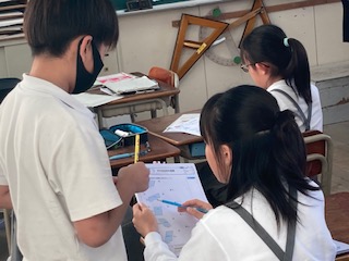 5年生の算数の授業風景です。子どもたちは今、三角形の面積の求め方を学習しています。授業の終盤には、ドリルやワークシートを使って、さらに習熟を深めていました。わからないところは友だちや先生に聞いたりしながら進めていく姿も見られました。みんなコツコツと頑張っています。