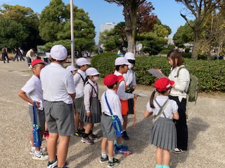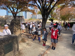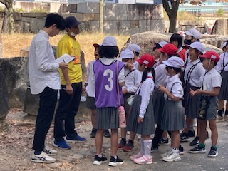 みんなで協力しながら、先生たちが待っているチェックポイントでクイズに答えながら進んでいきます。6年生のリーダーがそれぞれのグループをしっかりまとめて上手に回ることができています。