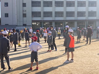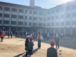 今朝は児童集会を行いました。太陽の光が差し込み、空気が澄んでいてさわやかな朝です。キッズ班で[動物名前バウンドゲーム]をしました。動物の名前の文字数だけボールをバウンドさせて相手にパスしていきます。キッズ班毎に成功した回数を競い合いました。朝から楽しそうに笑っている子どもたちの顔を見るのはとても気持ちがいいですね。