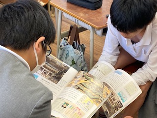 今はちょうど江戸時代のあたりを学習しています。6年生の子どもたちの中には歴史に興味関心を持っている子も少なくありません。授業では積極的に質問している姿がたくさん見られます。今日は今からテストがあるようです。先生の合図で、それぞれテスト勉強をし始めました。友だちとお互いに問題を出し合っています。社会のテスト前によく見られる光景ですね。頑張ってください。