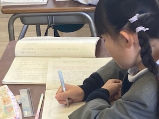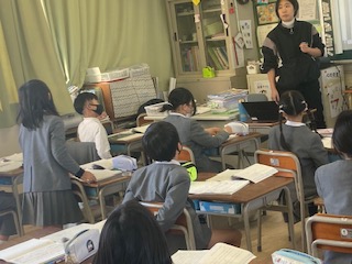 3年生の子どもたちが国語の授業の中で、登場人物の気持ちを考えたり、読むときの表現の仕方を工夫したりしていました。物語[モチモチの木]に出てくる主人公の[豆太]について考えています。子どもたちは自分が考えたことを進んで発表したり、表現の工夫をお互いに試してみたりしていました。とても和やかな雰囲気が感じられ、外は寒いですが授業はあたたかさに包まれていました。